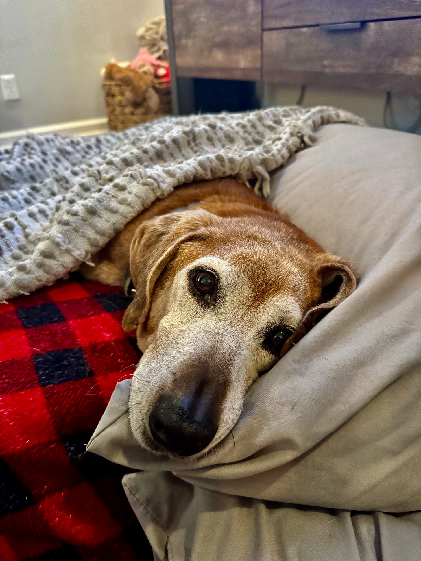 He left this world peacefully at home, in his bed, enjoying a slice of pepperoni pizza, surrounded by the four people who loved him the most. While it was a hard day, it happened exactly the way a doggy goodbye should—full of love.